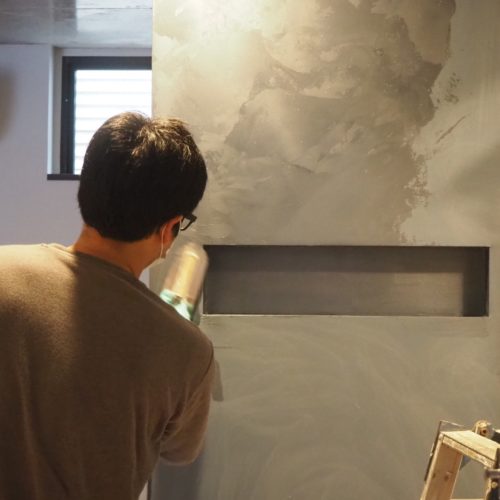 刷毛とコテを使って塗っていきます。