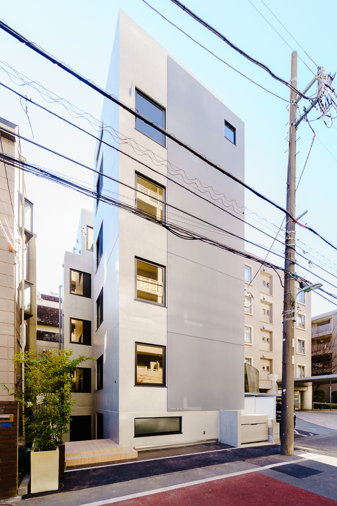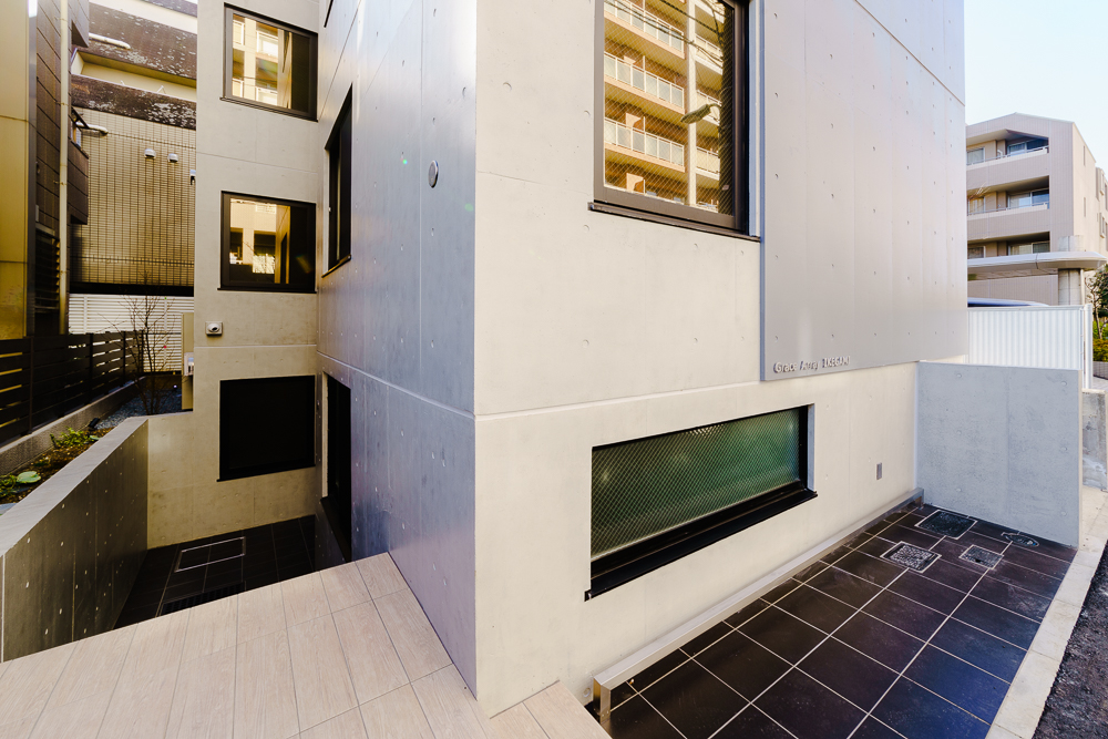 外観は、洗練された印象を与えるコンクリート打ち放しに、ふかし壁を用いて凹凸を出すことで、立体感を演出。また、サッシの配置やサイズにも変化をつけ、地域に溶け込みながも自然に個性が際立つ建物に仕上がっています。