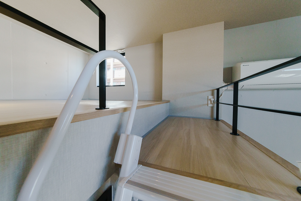 最上階にはロフトを設け、高い天井高が開放感を生み出しています。こちらのお部屋のロフトは5.12帖ありますので、寝室や物置きとしてだけでなく、リラックススペース、趣味の為の小部屋のような使い方など、さまざまな方法で活用して頂けそうです。(※本居室はすでにご入居者様が決まっている為、ご見学頂けません。ご了承くださいませ。)