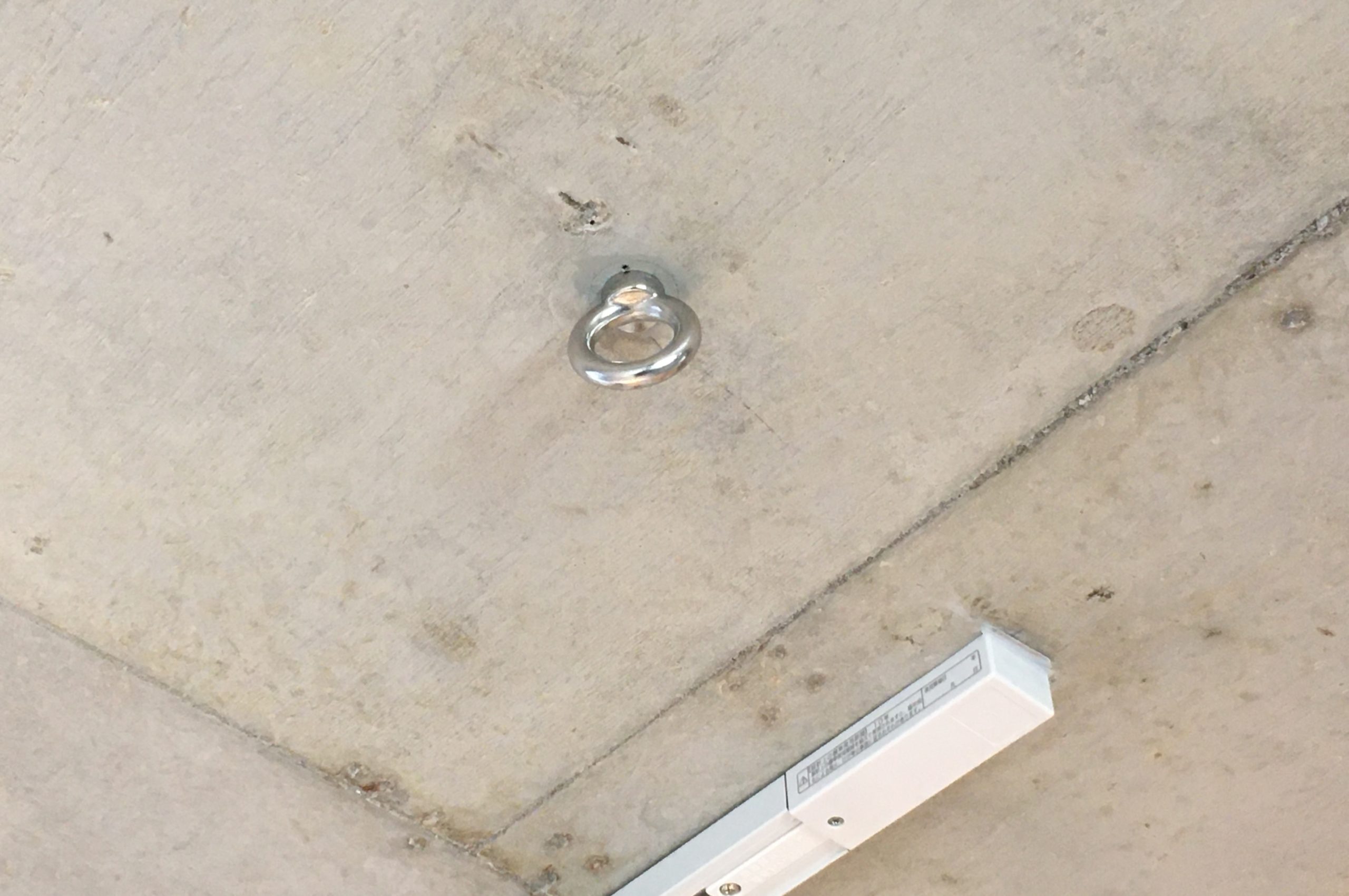 (左:最上階居室のシーリングファン/中:イメージ画像/右:ハンモック用アンカーボルト)