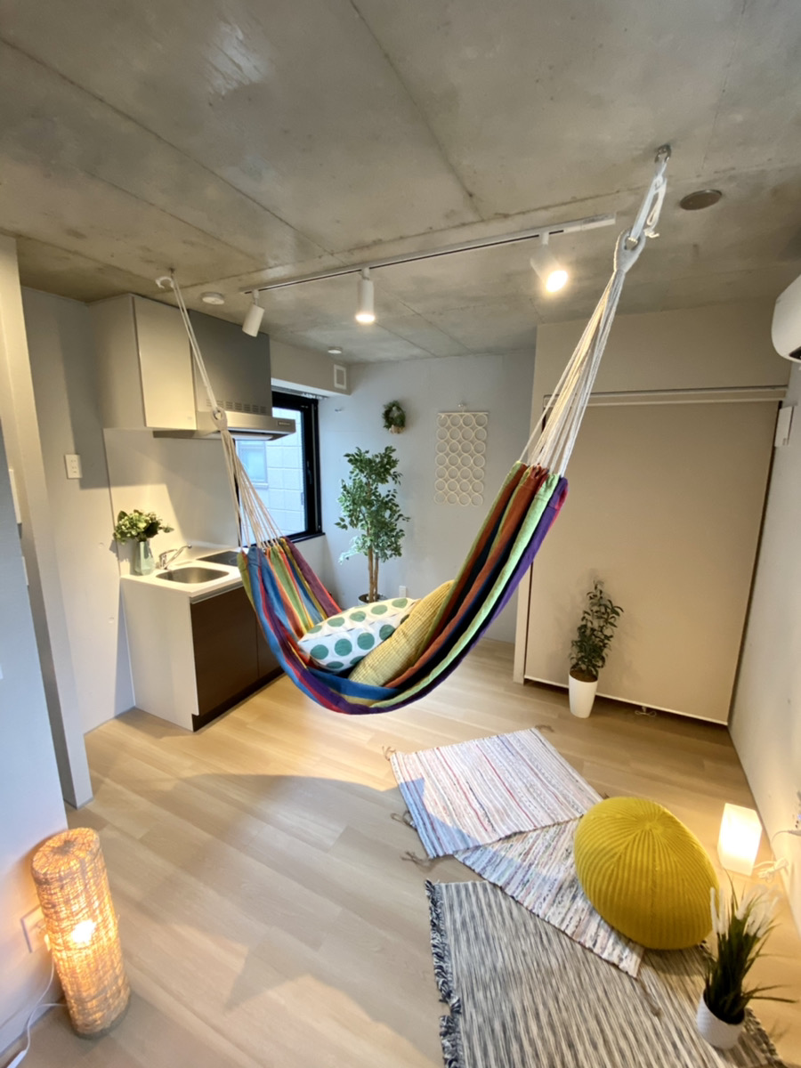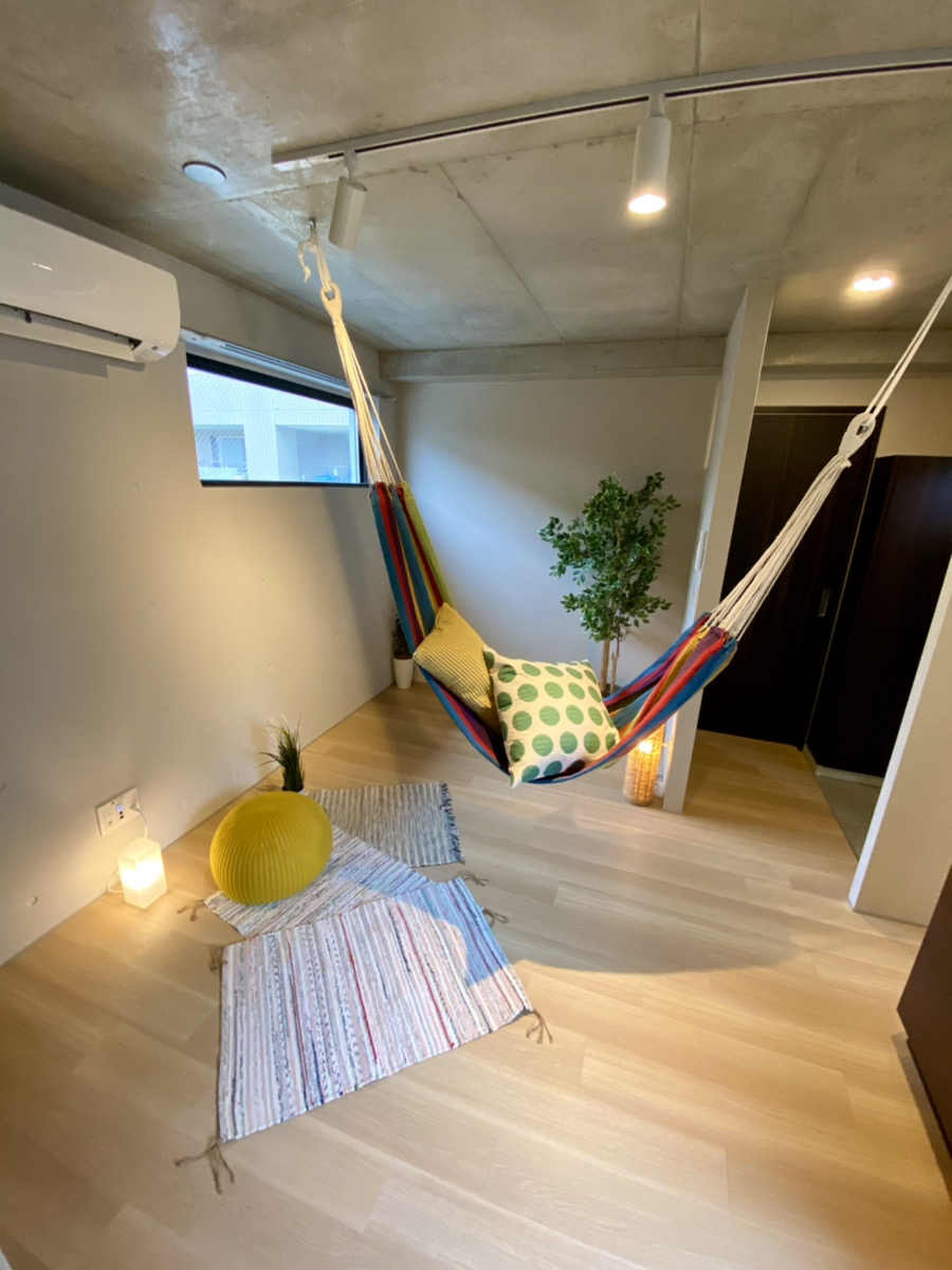 また、長方形のくぼみである「ニッチ」にお気に入りの雑貨などを飾って頂けるように仕上げたり、オーナー様の遊び心で「ハンモック用のアンカーボルト」を設置するなど、住まう方に楽しく暮らして頂けるよう細部まで工夫を凝らしております。(ニッチとアンカーボルトは全居室にございます。)