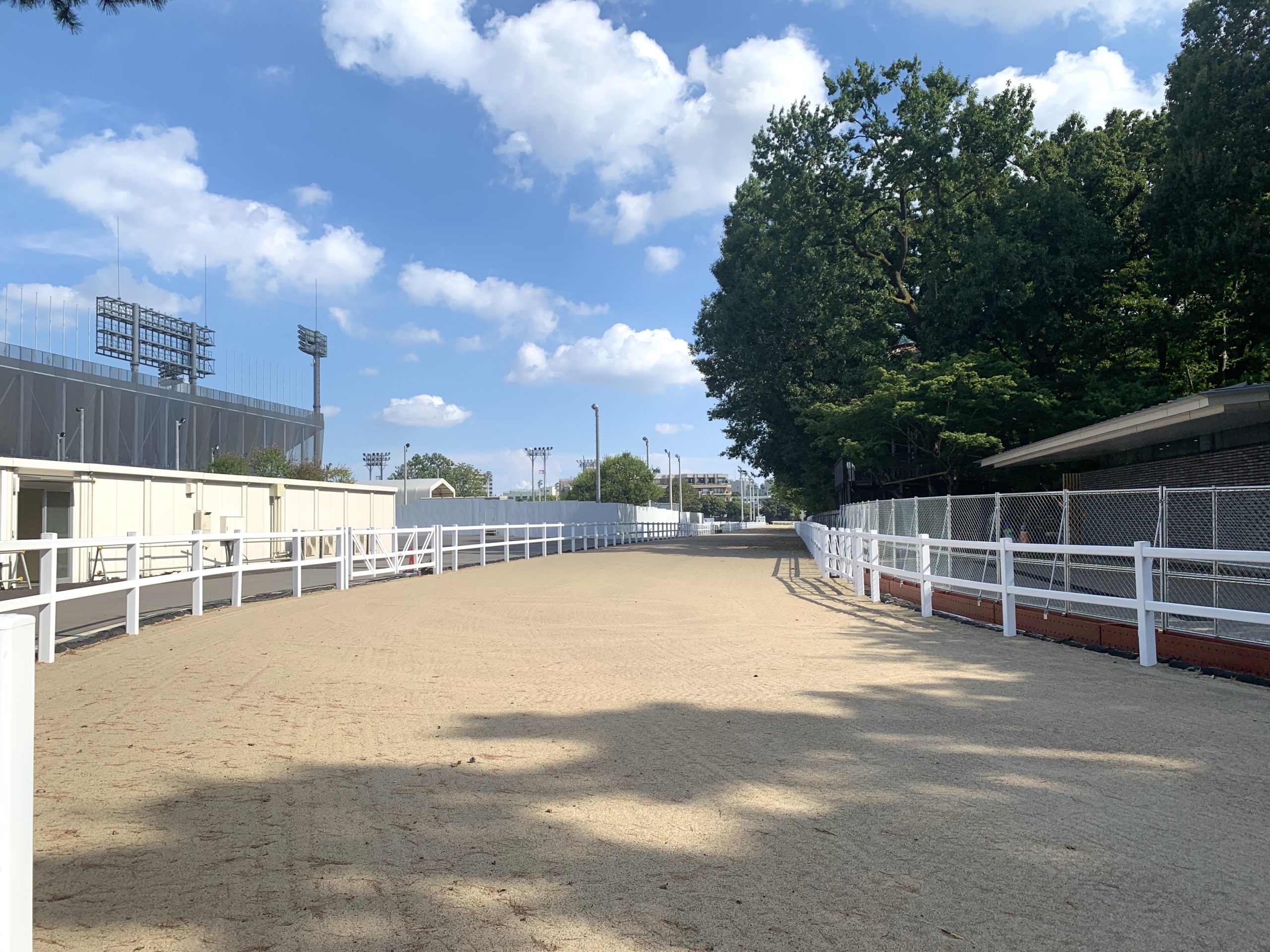 物件近くの馬事公苑は、東京オリンピックの馬術競技会場になることが予定されており、関連施設もすでに建設されています。現在準備のために閉園しておりますが、2020年8月~9月の土日のみ限定で一部を開放しておりましたので、先日撮影してまいりました。さまざまな施設が整備されており、開園すれば地域の方にとって自然と触れ合える憩いの場になりそうです。