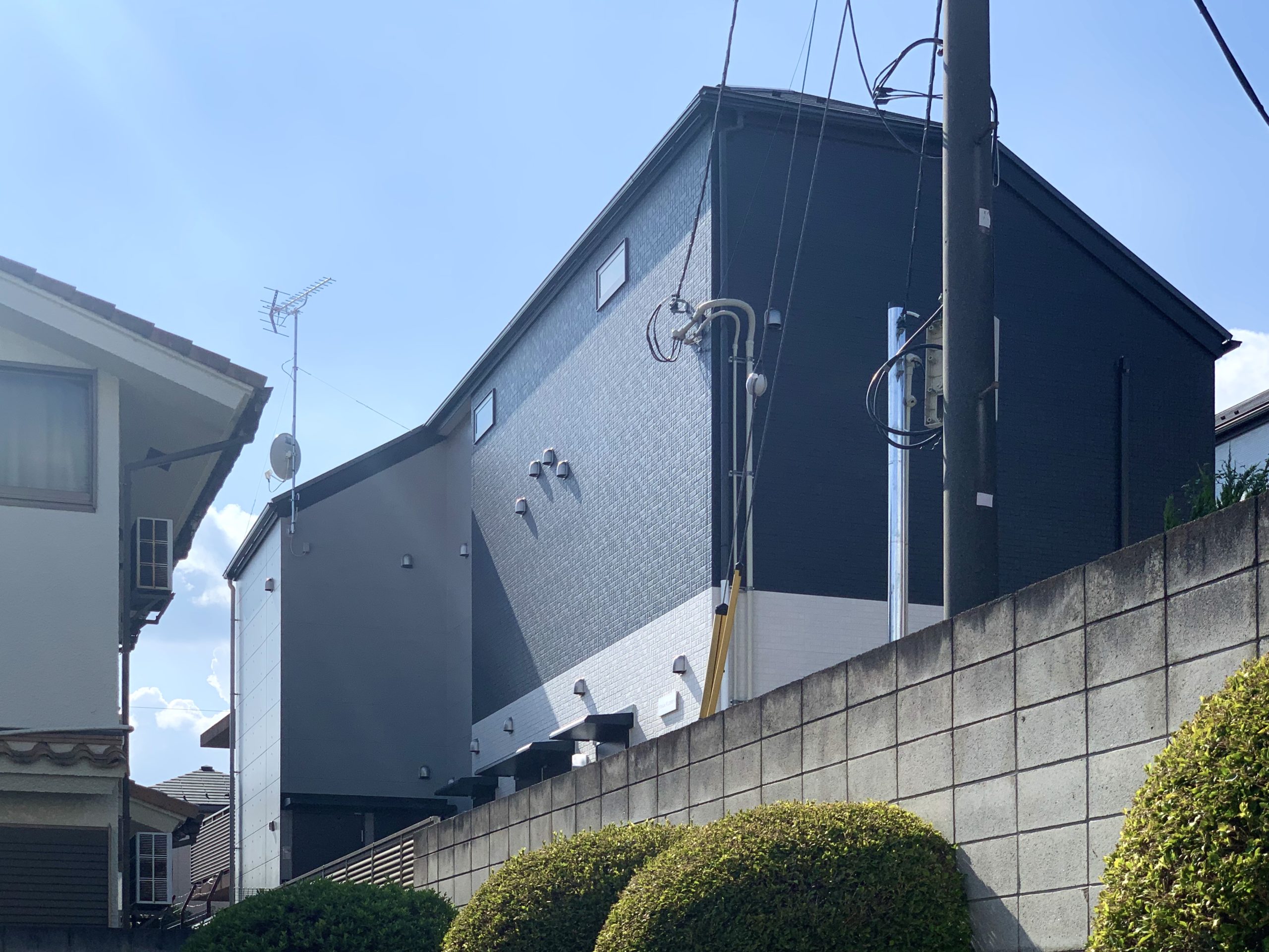 建物外観は、白と黒のツートンカラーがスタイリッシュなデザイン。