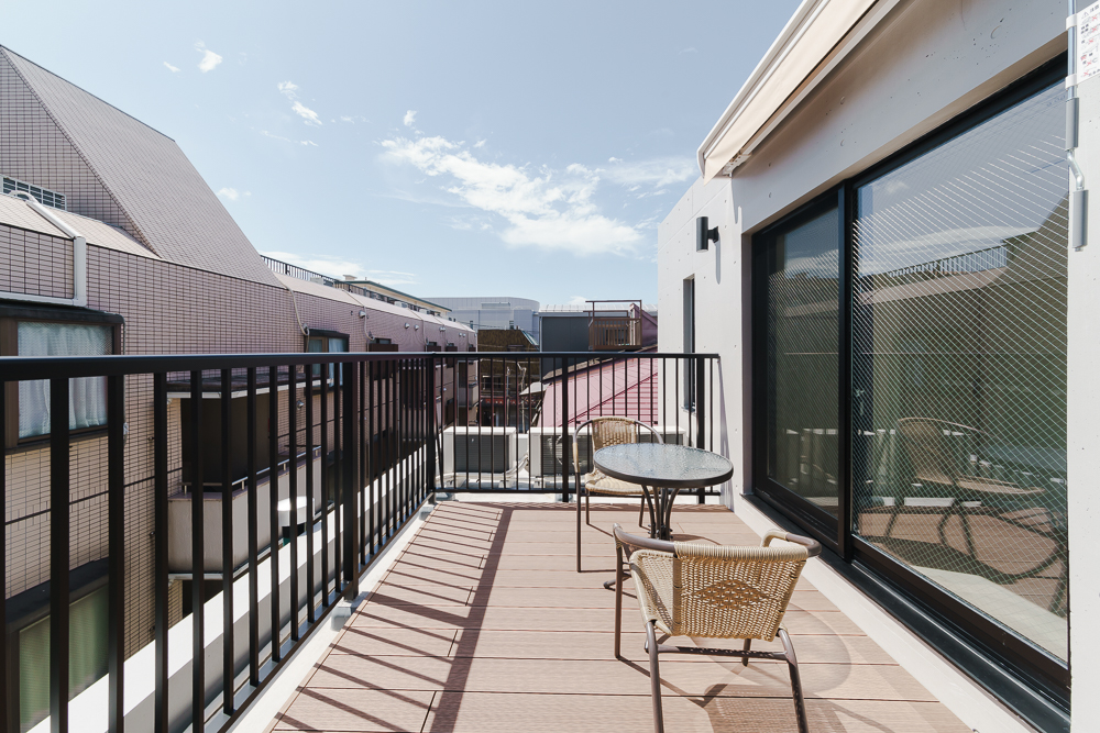 また、4階の一室には居室のとれないスペースを活かして広々としたルーフバルコニーを設け、付加価値に。都心の景色を眺めながらリラックスした時間を過ごすことができる空間になっています。